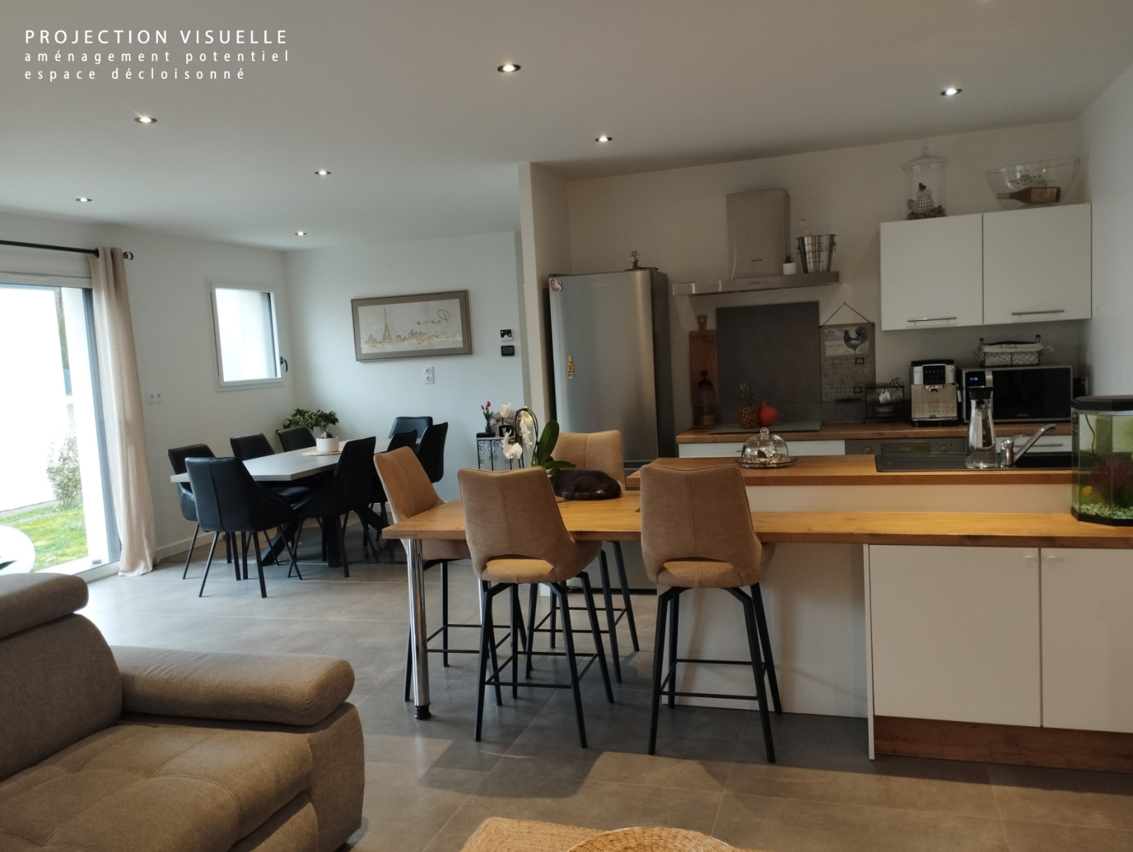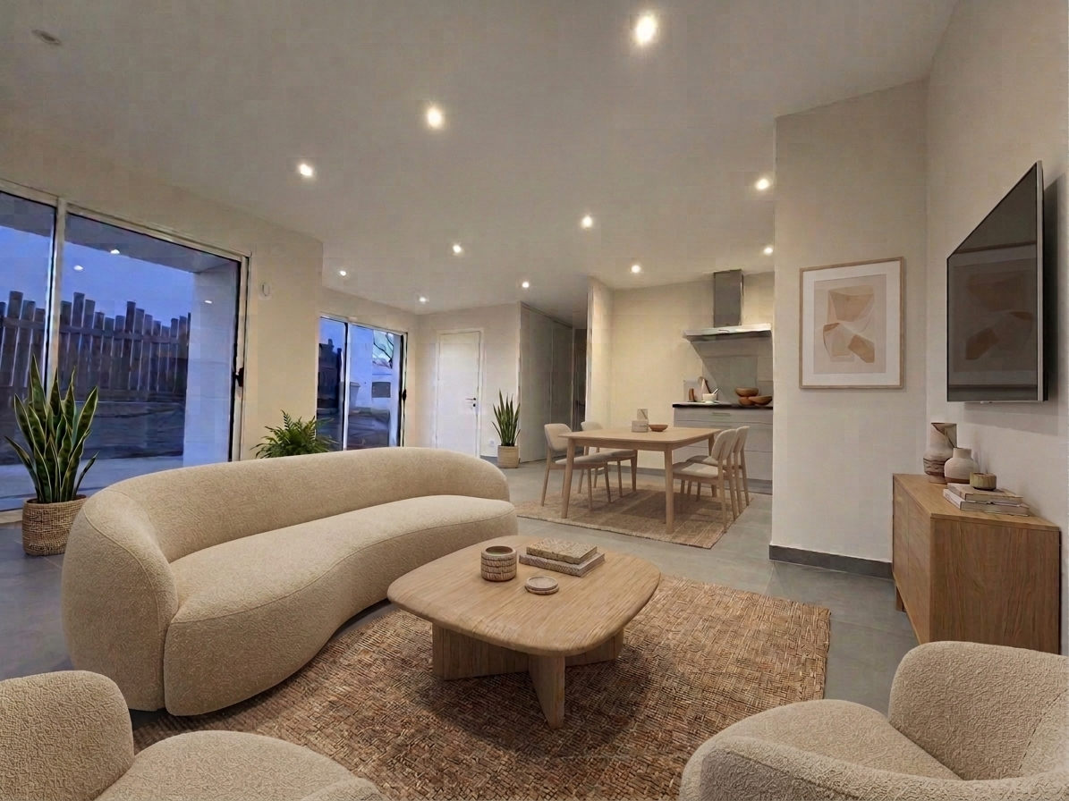 Dès l’entrée, vous serez séduit par une belle pièce de vie lumineuse où la cuisine équipée s’ouvre harmonieusement sur le salon-séjour, créant un espace convivial et chaleureux.