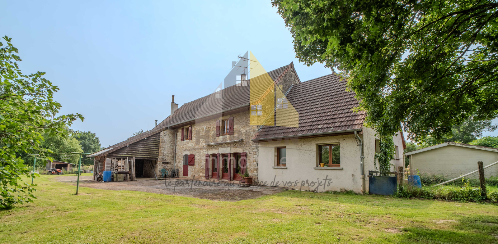 En complément, ce bien comprend un atelier, un abri et des espaces de stockage, ainsi qu’une grande cour avec un portail.