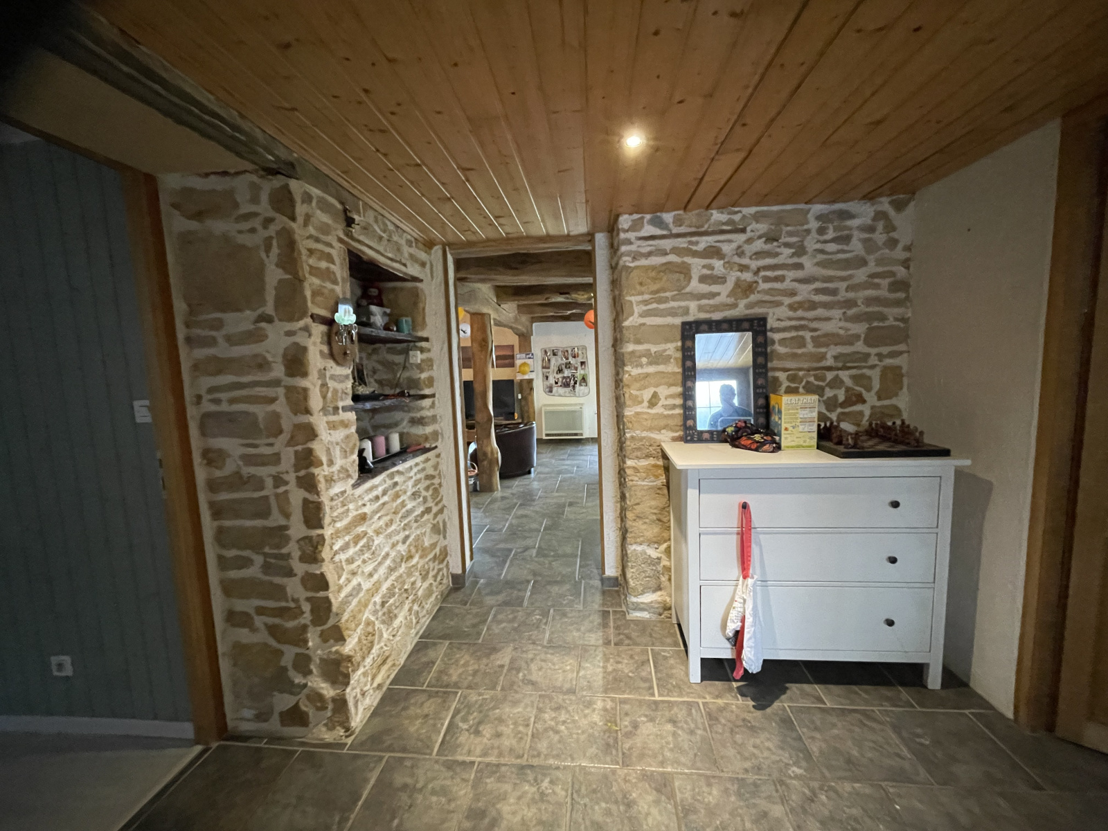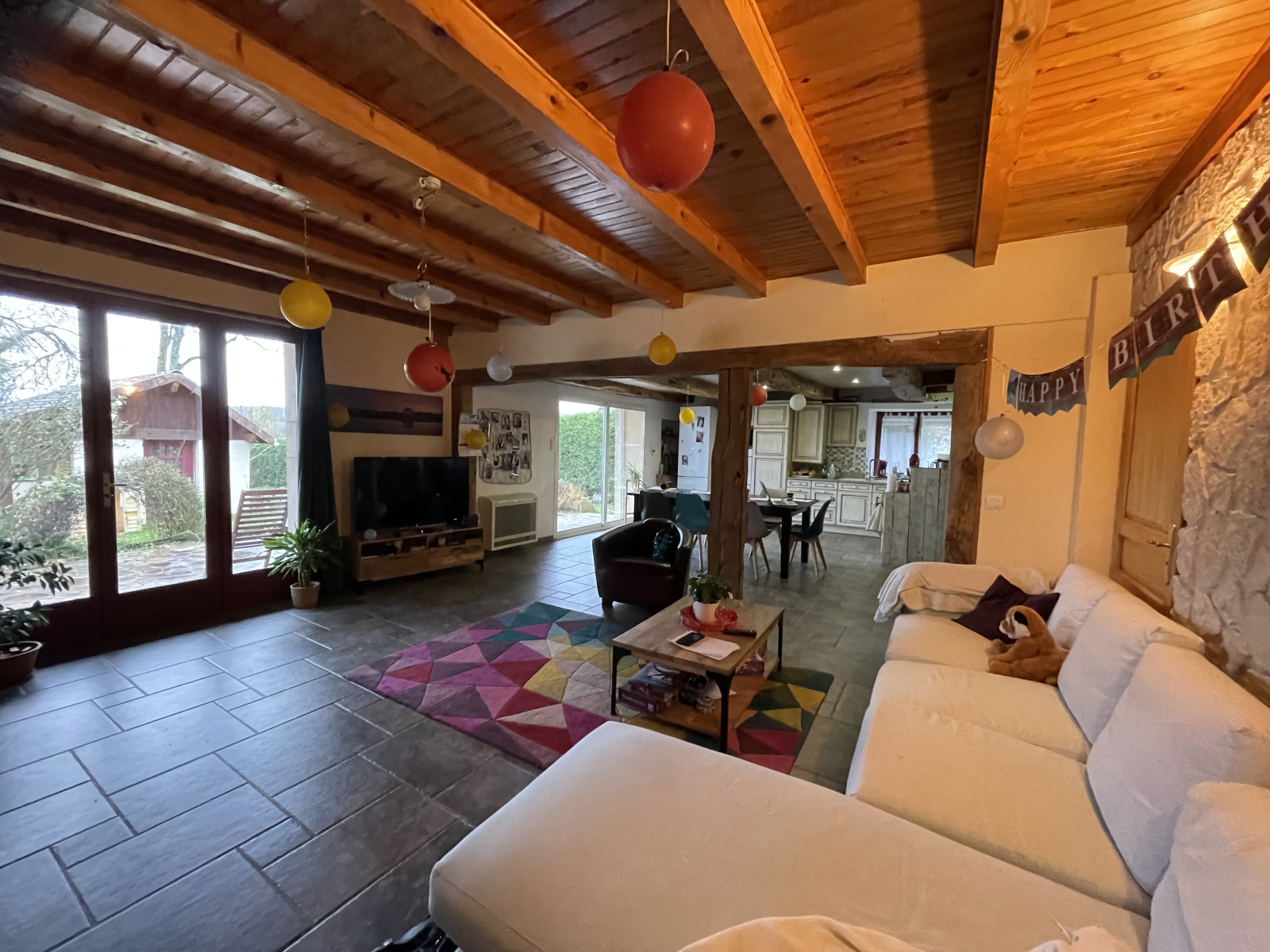 A découvrir en exclusivité dans votre agence, cette maison individuelle en pierre qui se compose de plain-pied d'une entrée avec placard mural, un WC, une salle d'eau, une chambre avec placard mural, une cuisine aménagée et équipée ouverte sur un grand séjour/salon. L'étage dispose de trois chambres, un bureau avec dressing, une grande salle de jeux et un grenier aménageable. Attenant : les anciennes écuries à usage de chaufferie, buanderie et autre rangements, un atelier. Un abri à voitures. Indépendamment : l'ancienne chambre à four. Situé sur un beau terrain arboré d'environ 4 200 m², vous serez charmés par cet ensemble immobilier proche de Sellières et de ses commerces.