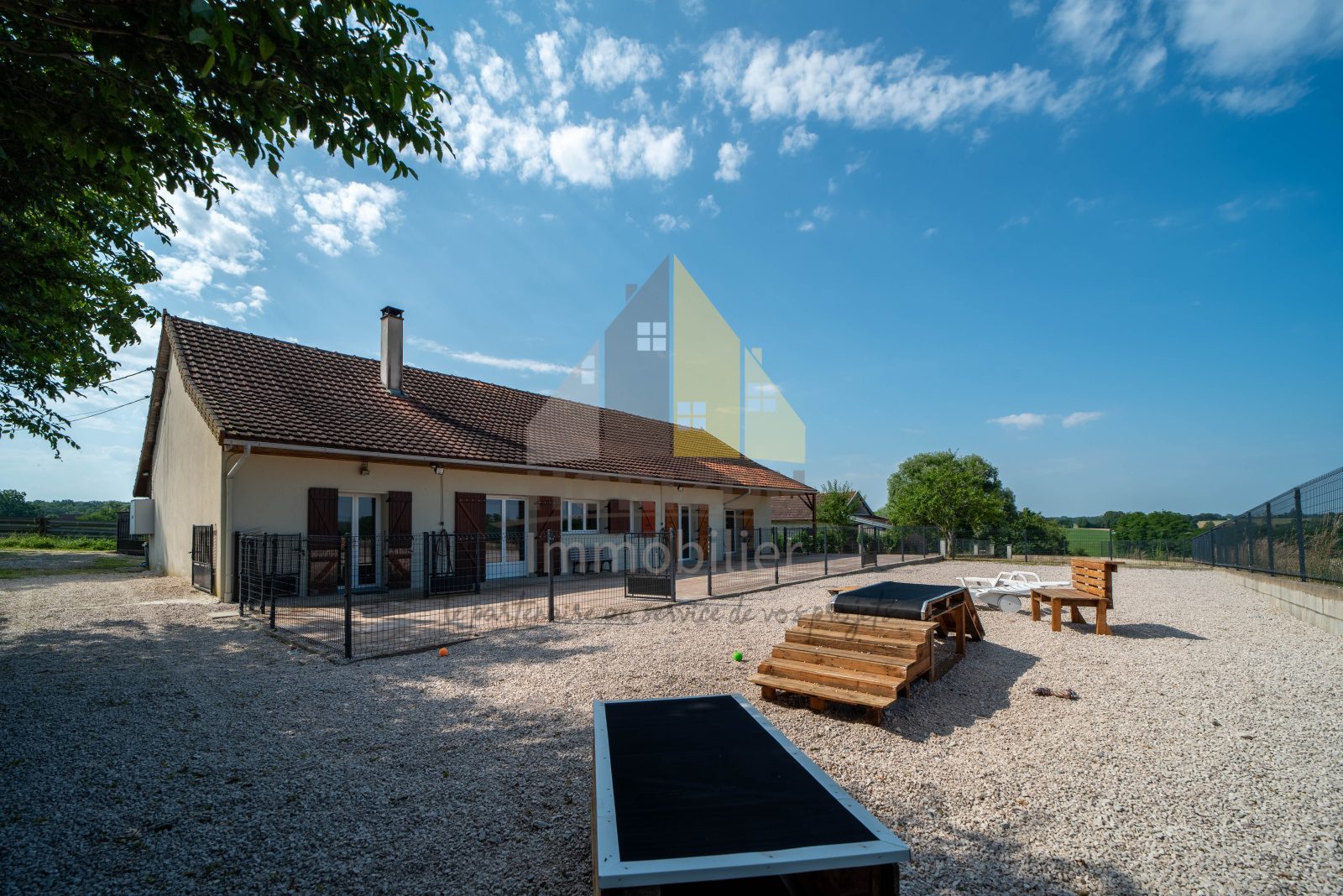Pour l'activité d'élevage vous disposerez d'une pièce chenil avec un accès vers le jardin, une nurserie, une pièce toilettage, une pièce avec cuisine, plusieurs parcs en herbe et en gravier ainsi qu’un espace bétonné de 120m². Toutes les pièces sont carrelées et faïencées à 1m de hauteur.