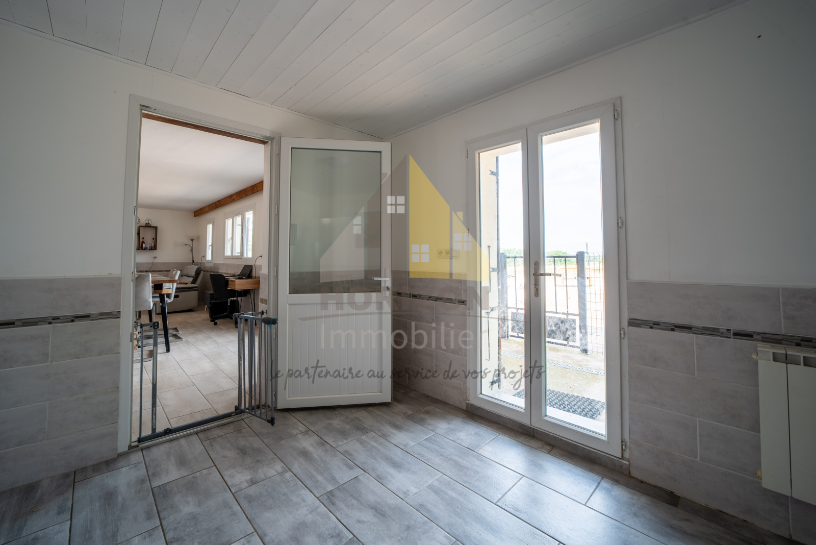 La maison est entièrement clôturée avec un grillage rigide sur muret et un portail à l'entrée.